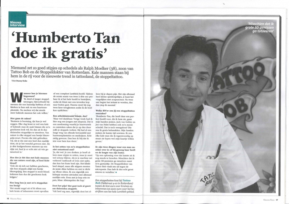 Q-Music DJ Joep calls stubble doctor Ralph on the tattoo which makes it seem as if you have a head of hair again; the stubble tattoo.